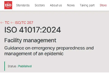 由我國牽頭制定的ISO 41017:2024 Facility management — Guidance on emergency preparedness and management of an epidemic 《設施管理 疫情應急準備與...